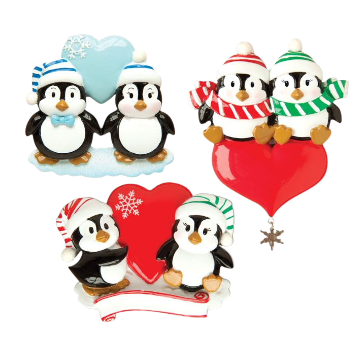 OR1183-A - Penguin Couple W/Heart Assortment (4 of Each) Personalised Christmas Decoration