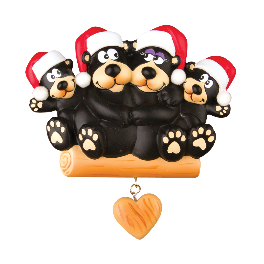 OR1215-4 - Black Bear Family of 4 Personalised Christmas Decoration