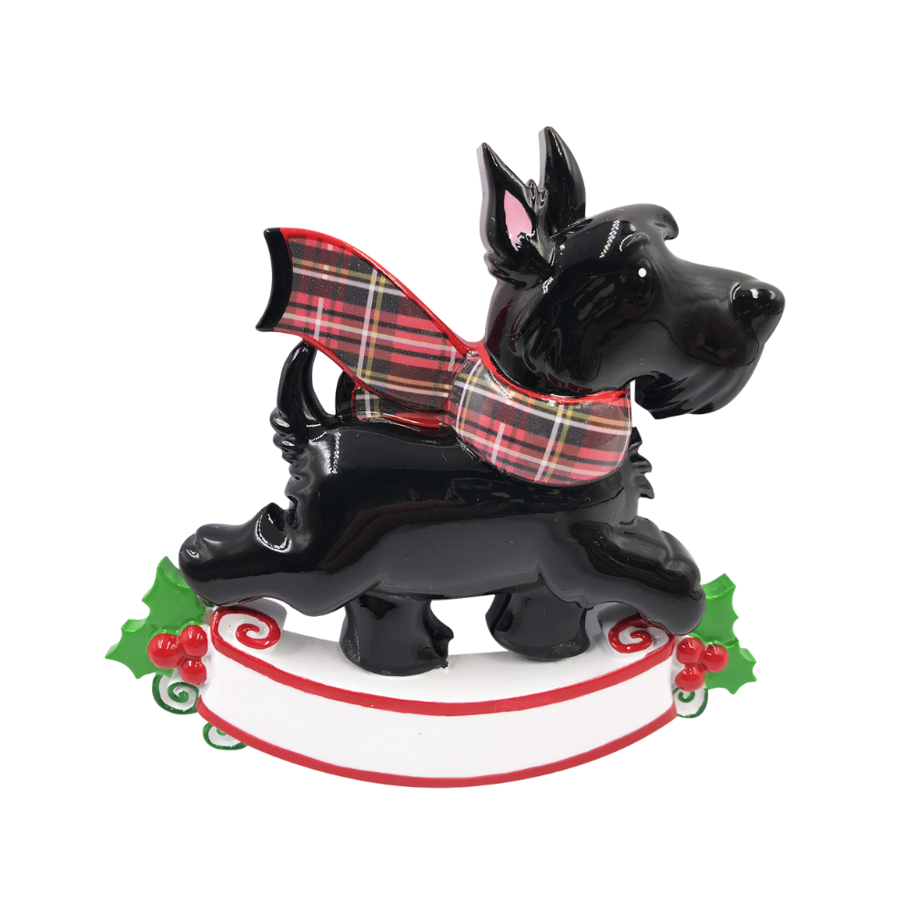 OR2210-BLK - Scottie Dog W/Tartan Scarf (All Black) Personalised Christmas Decoration